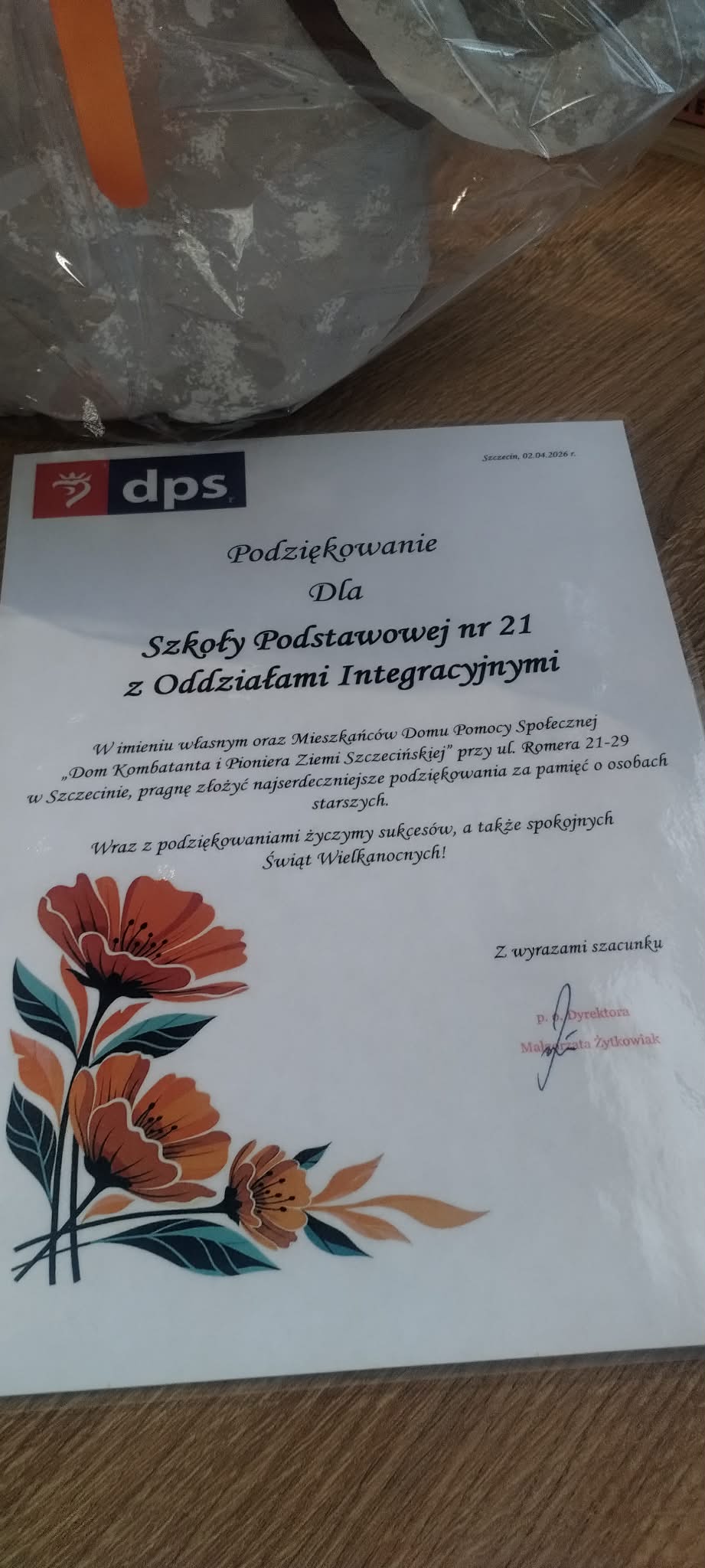 Uczniowie naszej świetlicy wykonali kartki i ozdoby wielkanocne, które 2 kwietnia zostały przekazane dla Mieszkańców Domu Pomocy Społecznej „Dom Kombatanta i Pioniera Ziemi Szczecińskiej.
