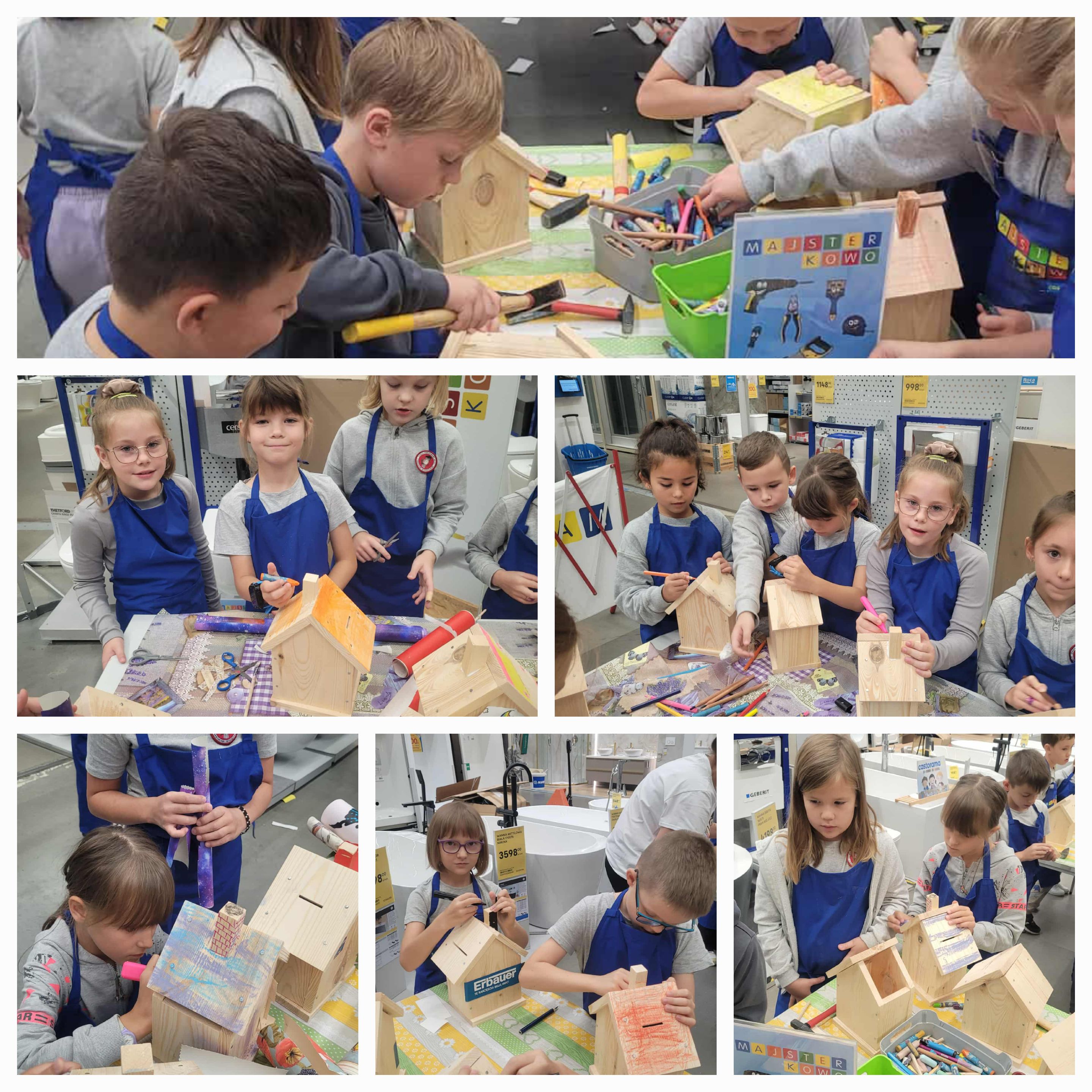 Uczniowie klasy 2a wybrali się na niesamowite warsztaty w ramach programu Majsterkowo. Wszyscy mieli szansę na rozwijanie swoich zdolności manualnych, ponieważ przy dźwiękach wbijanych gwoździ powstały piękne, drewniane skarbonki. Podczas ich ozdabiania ujawniły się prawdziwe dusze artystyczne uczniów. Bardzo serdecznie dziękujemy @Castorama Szczecin Południowa za wspaniałe warsztaty i niezwykle miło spędzony czas!