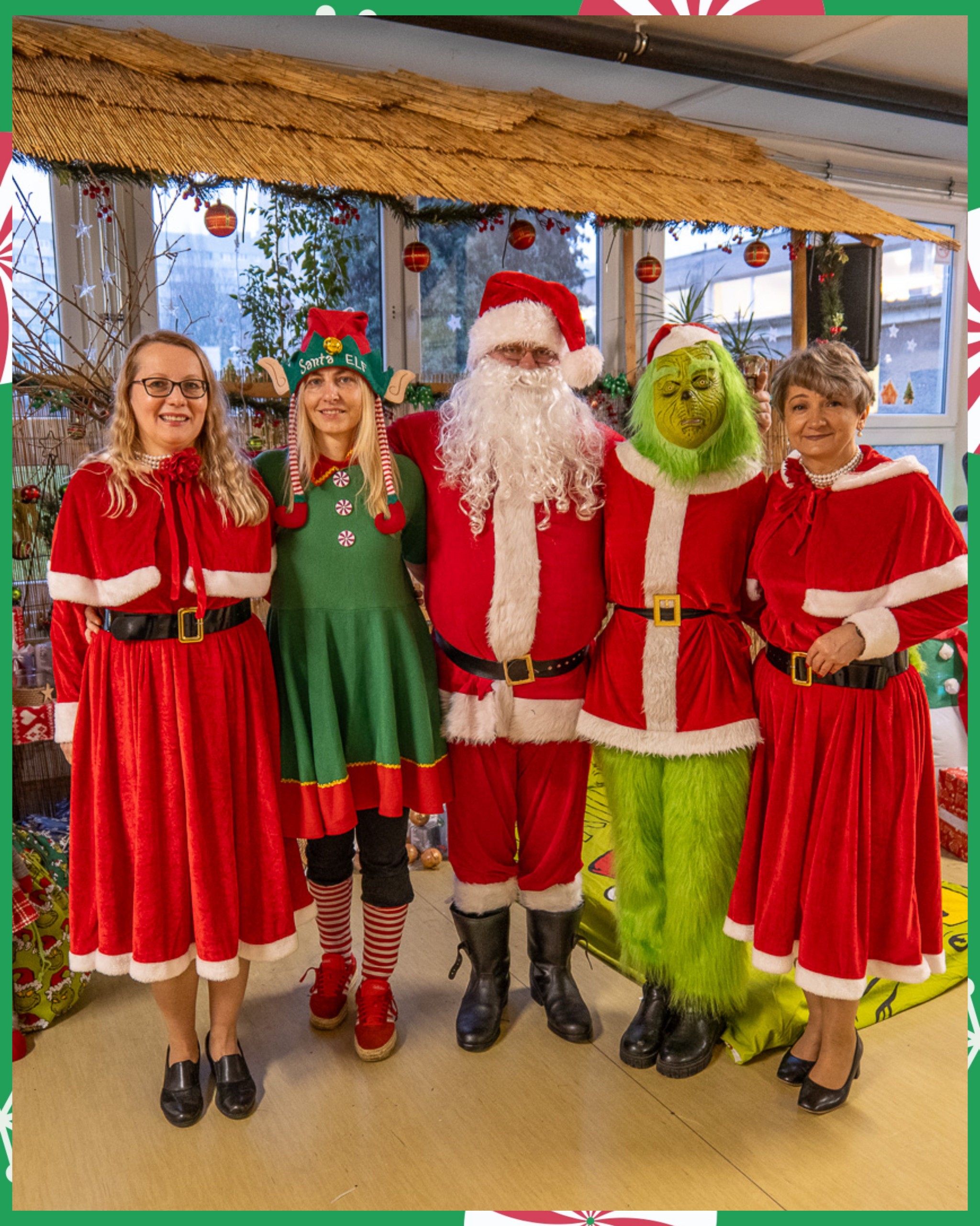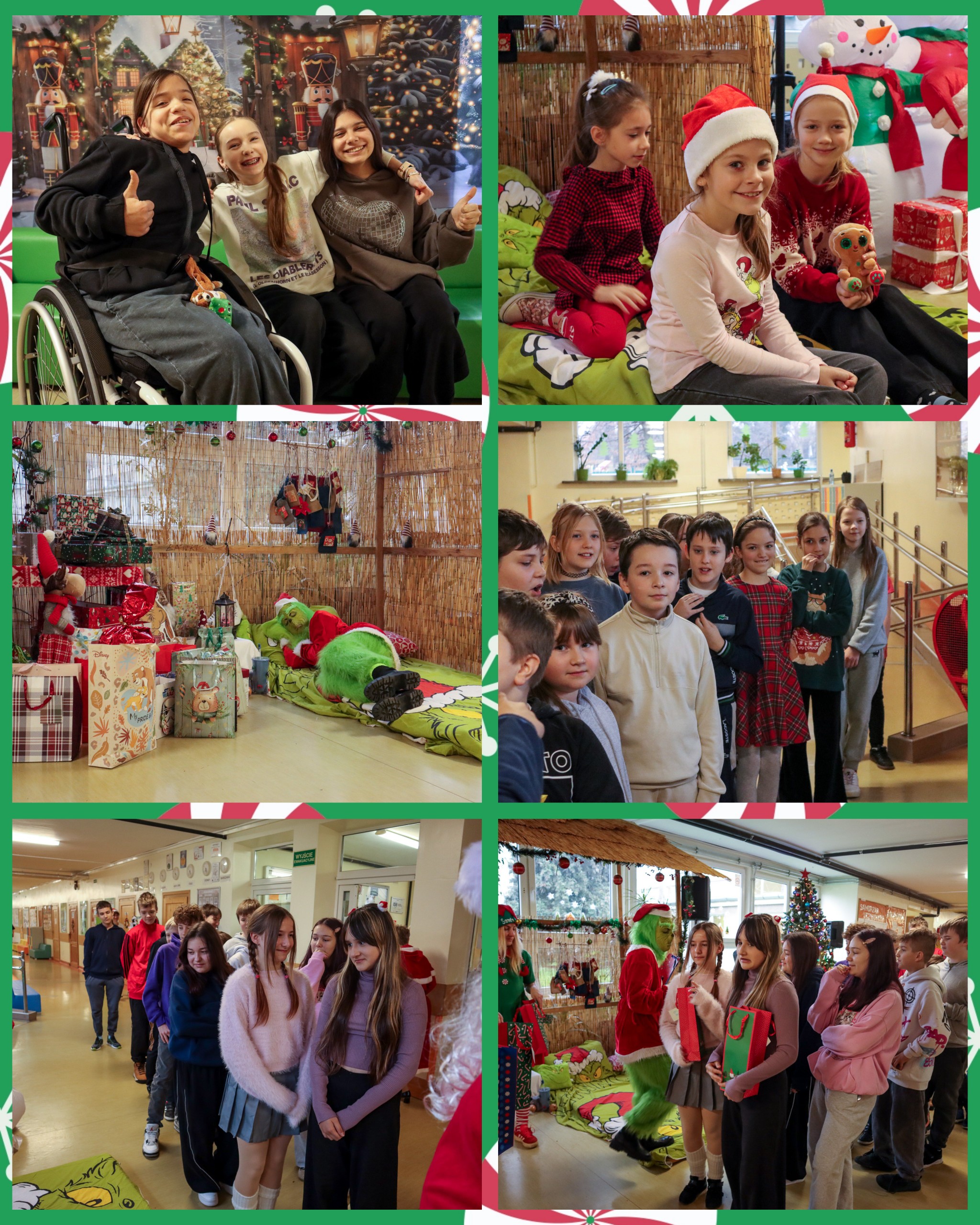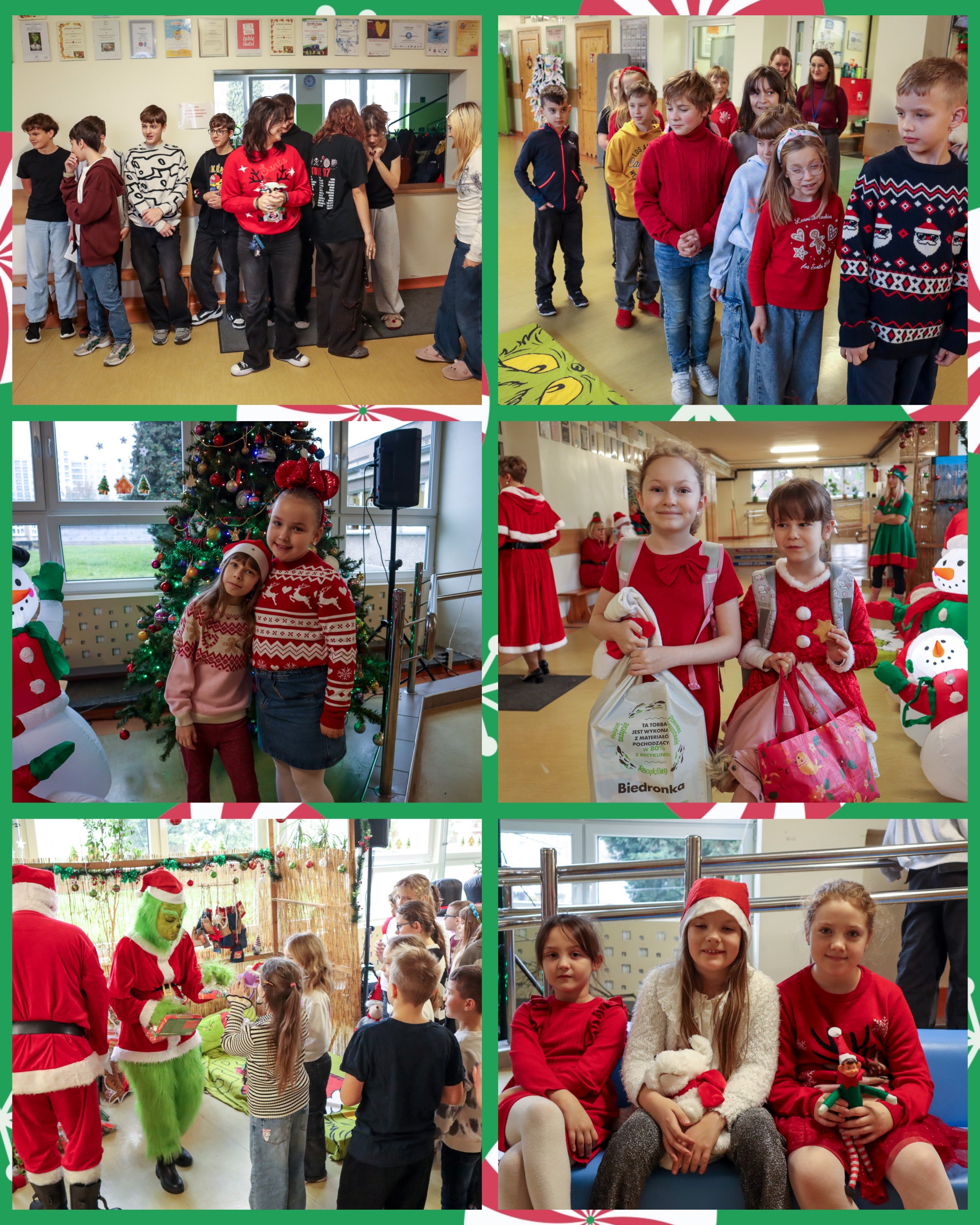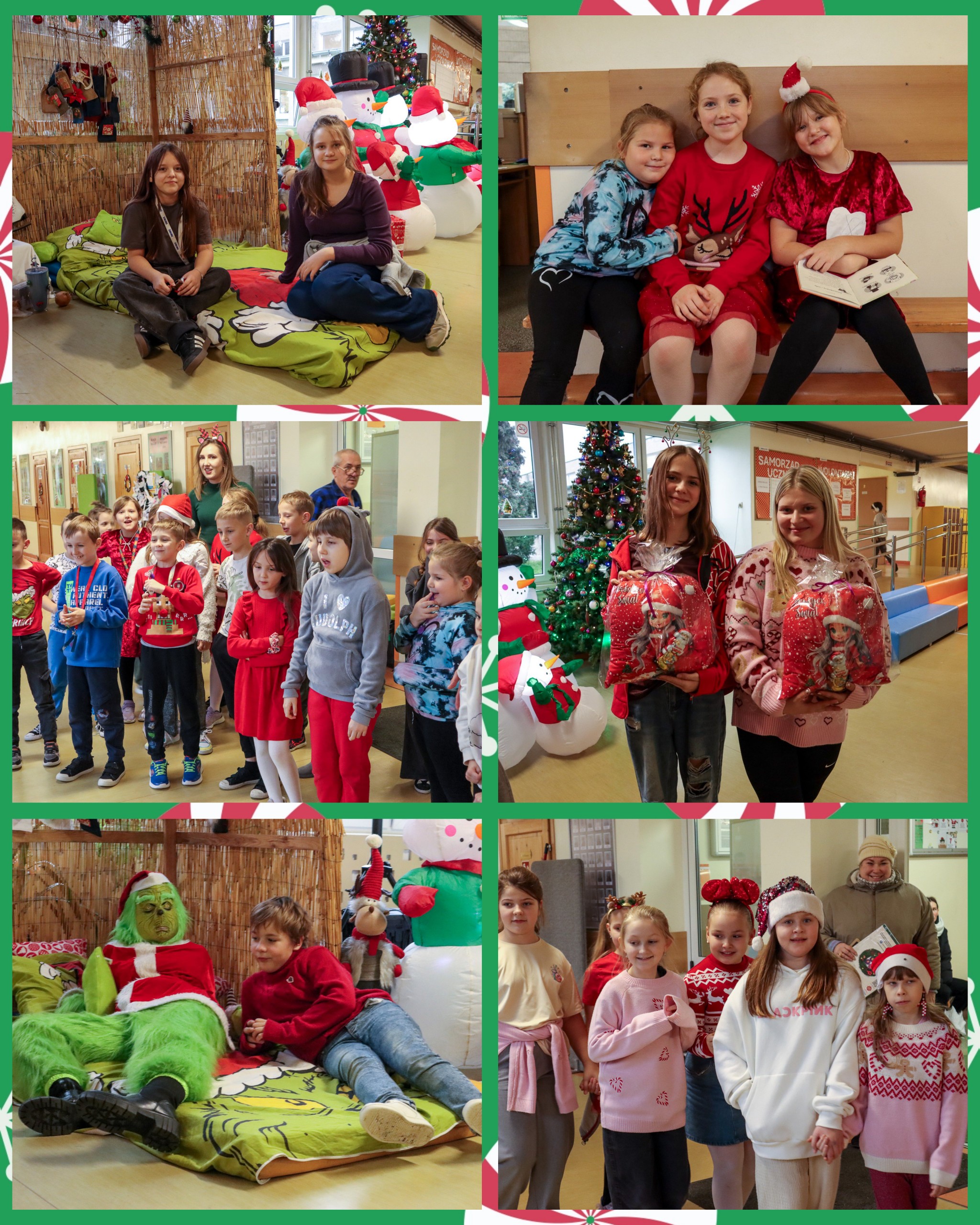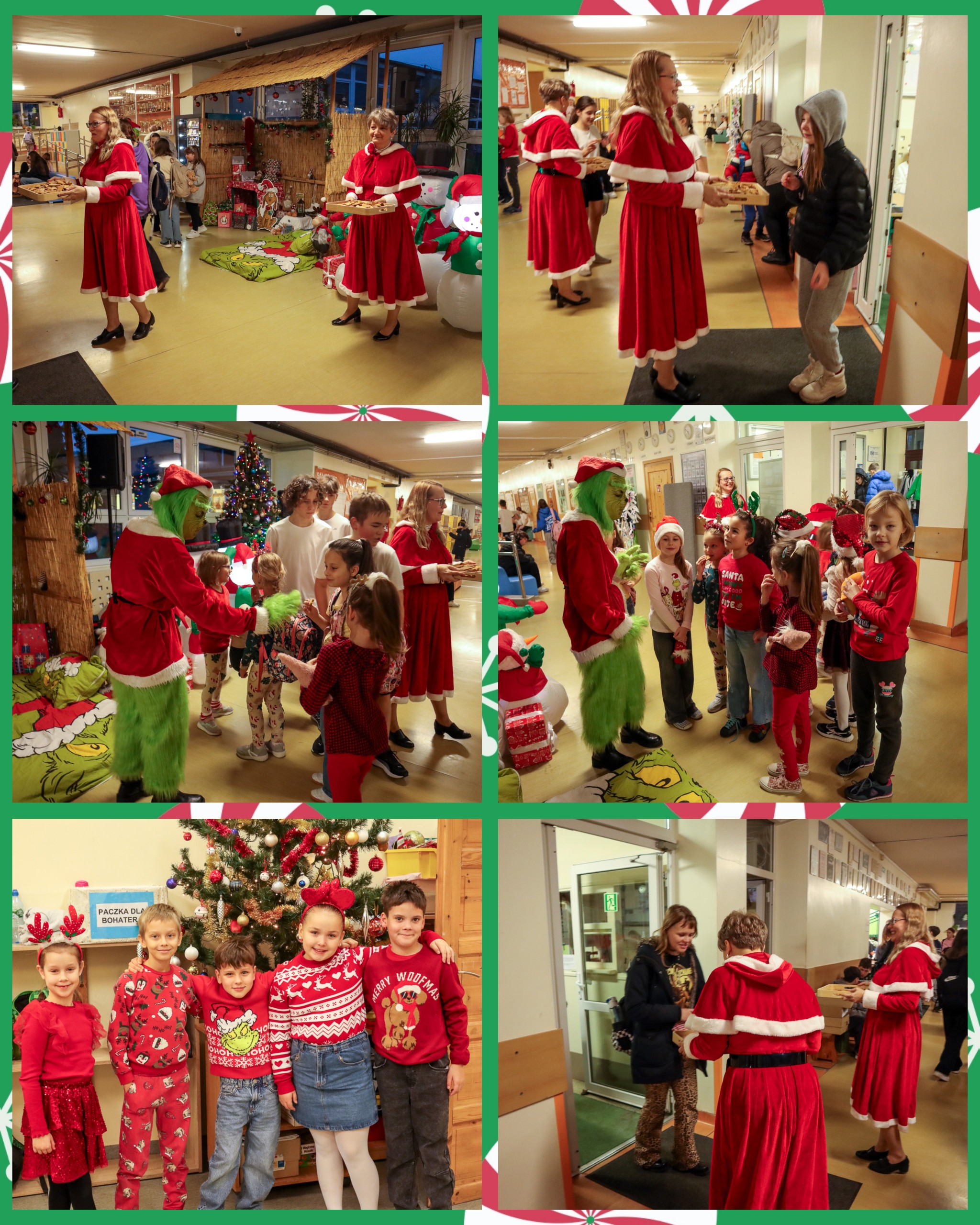 Dnia 05.12.2025 r. w naszej szkole pojawili się wyjątkowi goście – Mikołaj, Grinch oraz Elfica Elfka, którzy wspólnie z uczniami świętowali magiczny dzień Mikołajek ? Pani Dyrektor z dumą ogłosiła, że w tym roku wszystkie dzieci były grzeczne, dlatego każdy zasłużył na prezent. Nawet z tego powodu razem z Panią Wicedyrektor upiekły pierniczki i rozdawały je przed wejściem do szkoły. Zdradzimy Wam, że p.Gessler mogłaby się uczyć od naszej dyrekcji. Radości, uśmiechów i świątecznej atmosfery nie brakowało. Grinch nam obiecał, że nie zamierza popsuć Świąt ?